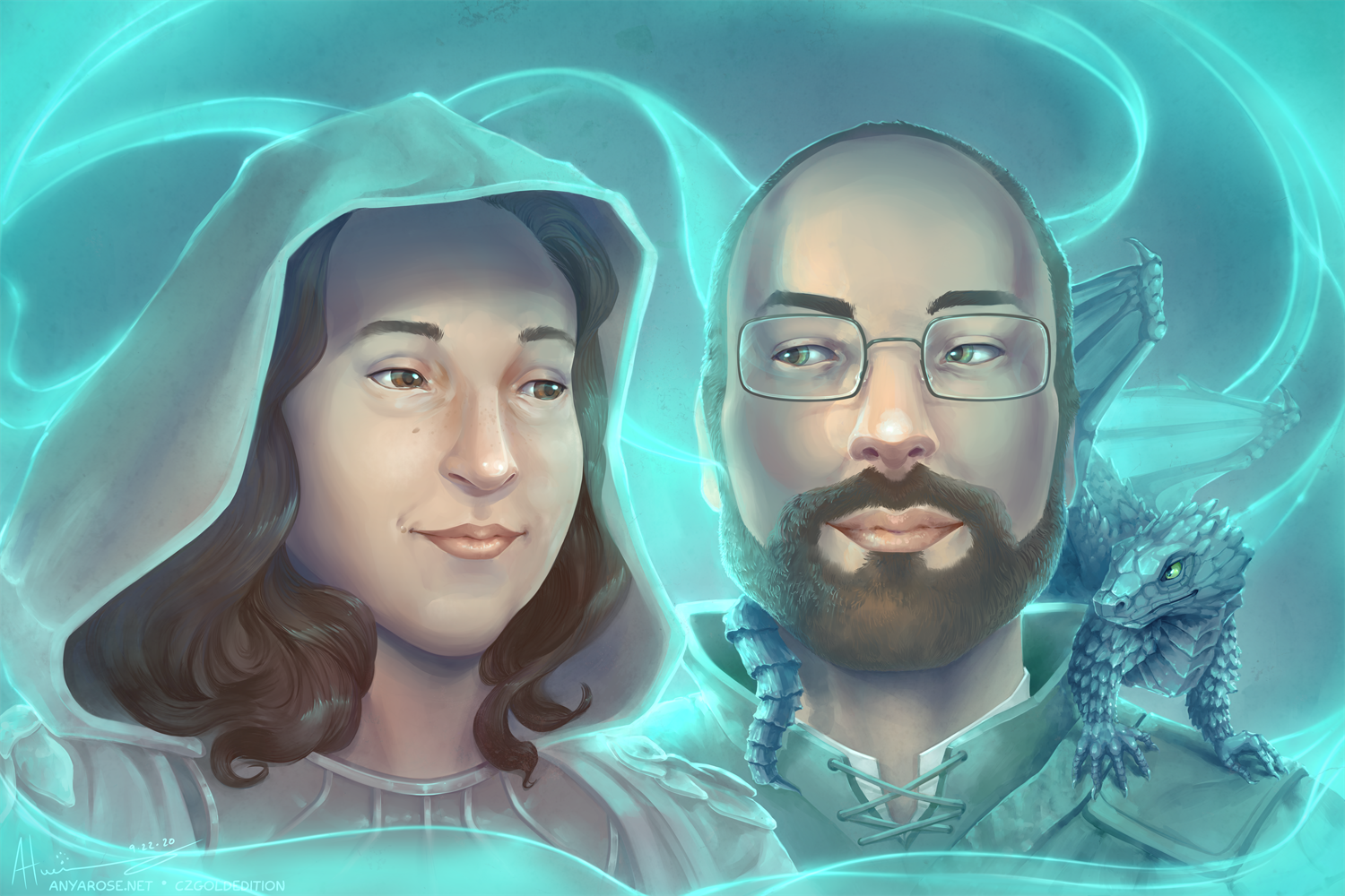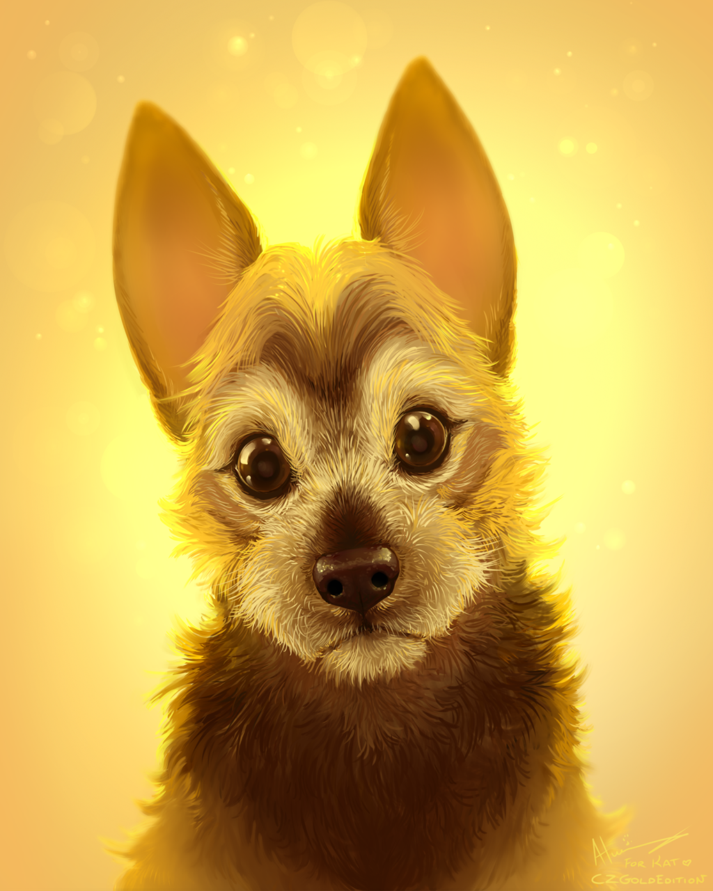 Painted shoulders-up 'photo style' portrait with printing in mind: pet portraits, fantasy or sci fi themed portraits of people, characters.145 EUR per fantasy or human subject/character, 95 EUR per pet portrait