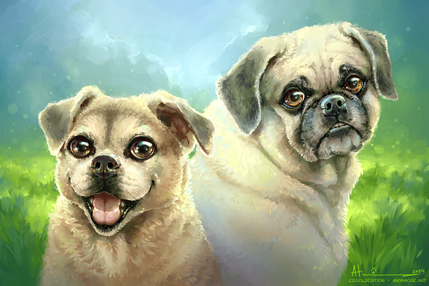 Examples of pet portrait types can be found below. Click to enlarge. Prices are for personal use and include 21% VAT. Purchasing copyright/exclusive usage rights is possible for an additional fee.To request a commission, email anyarhueing@gmail.com with any inquiries.